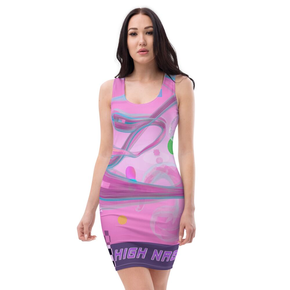 全面プリントのぴったりフィットのワンピースで大胆な着こなしを楽しみましょう。